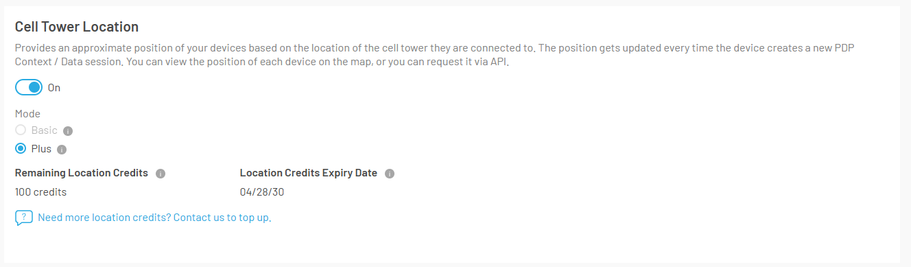 When Plus solver mode is enabled, it improves the Cell Tower Location accuracy and coverage particularly for 3G, 4G and LTE-M. However, NB-IoT resolutions will not be performed in Plus solver mode.