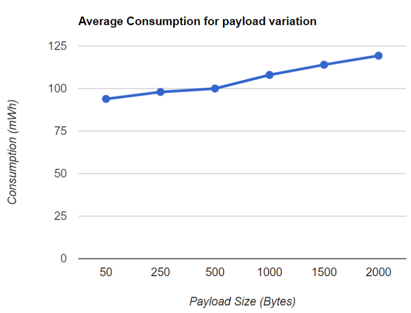 | Payload Size (Bytes) | 1st Hour | 2nd Hour | 3rd Hour | Average consumption (mWh) |