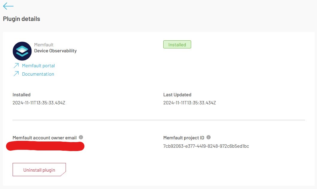 To get details or uninstall your Memfault integration via API, you can use the same endpoints you would use for a generic Plugin described in the API Explorer.