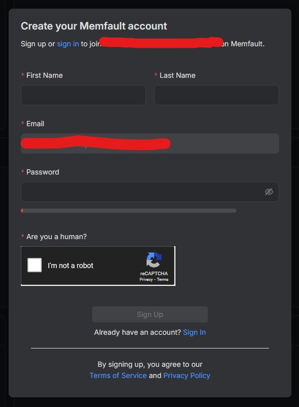 Please note that during Memfault plugin installation your Organization's email address will be used for the new Memfault account. You will need access to this email to receive confirmation email from Memfault after Sign up.