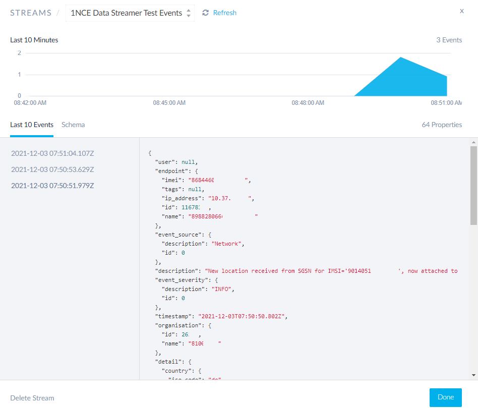 - The attachment to a mobile network will cause a few Event records to be transmitted over the Data Streamer integration.