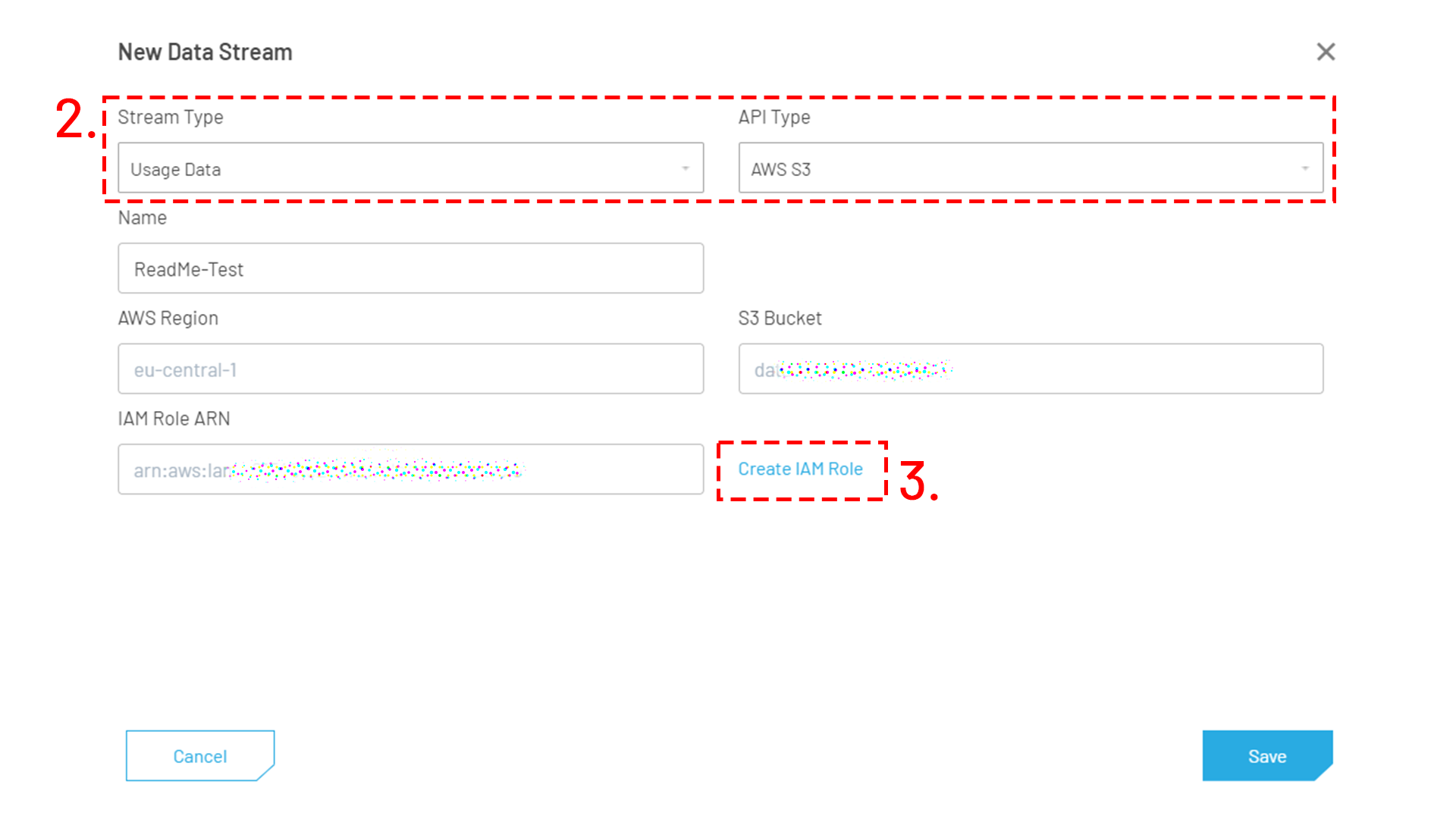 2. In the popup select AWS S3 as API Type and select the desired Stream Type.